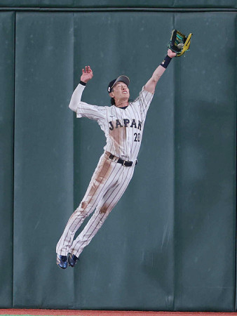 WBC・日本―韓国。9回、飛球を好捕する日本代表の中堅手・周東=7日、東京ドーム 【時事通信社】