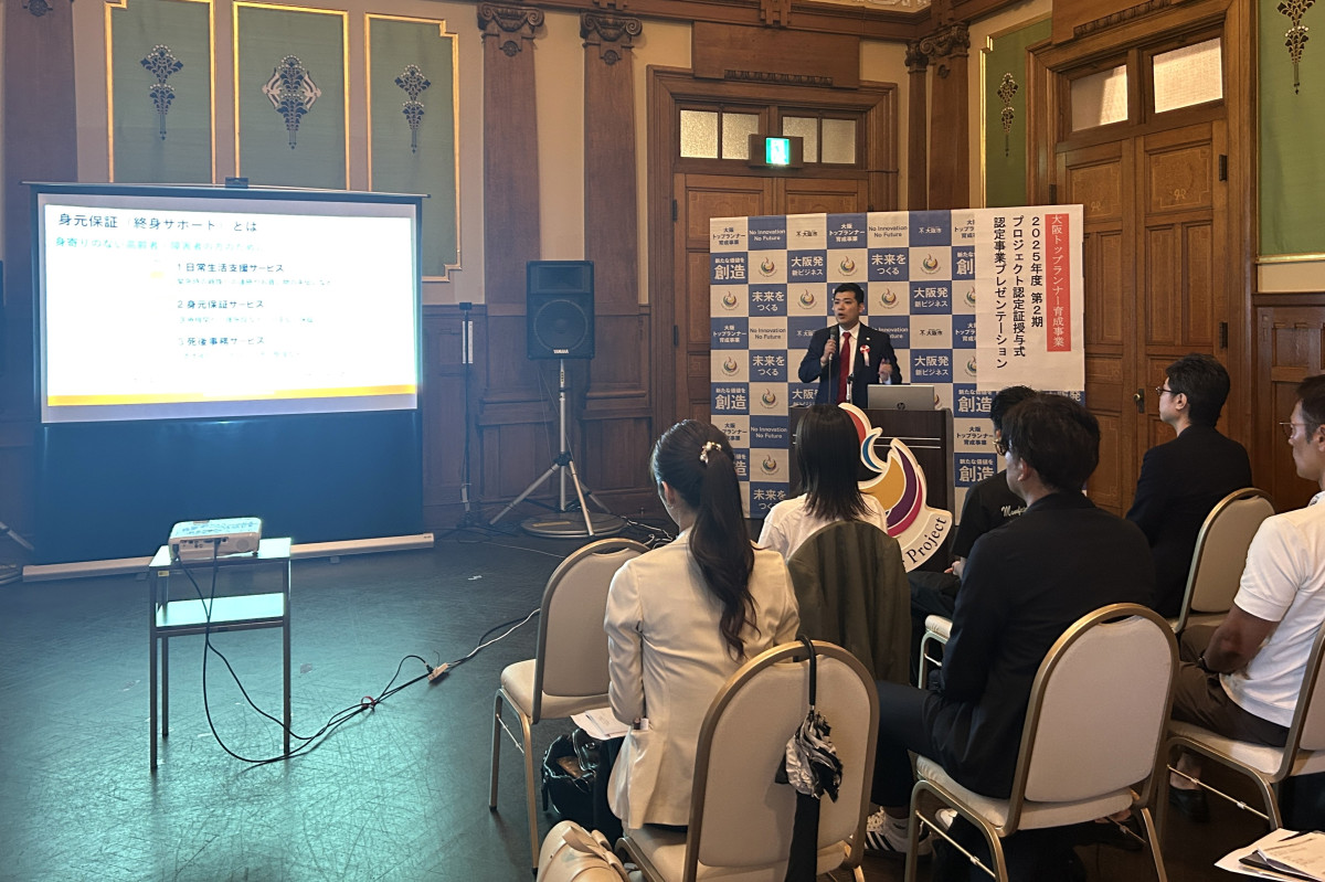「大阪トップランナー育成事業」のプロジェクト認定証授与式が9月25日、大阪市中央公会堂(大阪市北区中之島1)で開催された。主催は大阪市、運営は大阪産業局。