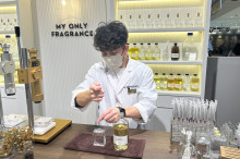 店長の岸澤旺太郎さんは「先入観なしに直感で香りを選んでもらうため、24種類の香料には名前を表記せずあえて番号のみにしている。アドバイザーがバランスを見ながらお客さまのイメージしている香りに寄せるのでぜひ体験してもらえれば」と話す。