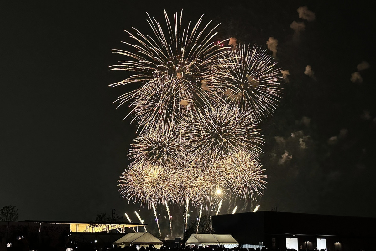 ライブの途中に花火が上がり、演奏を中断し全員で観覧する一幕も