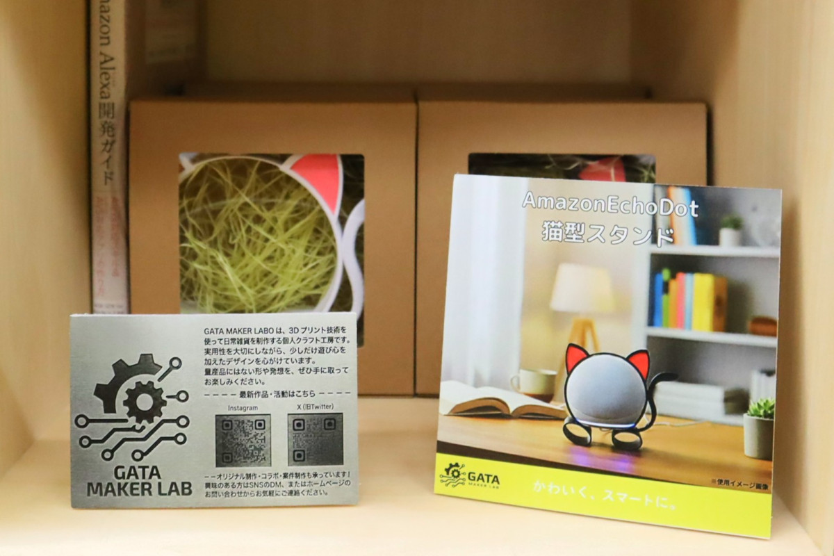 3Dプリンターで作ったスピーカースタンドを販売する棚