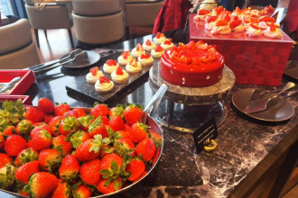 「『The Elegant Red(ジ・エレガント レッド)』ストロベリースイーツビュッフェ」が12月1日、コンラッド大阪(大阪市北区中之島3)40階「アトモス・ダイニング」で始まった。