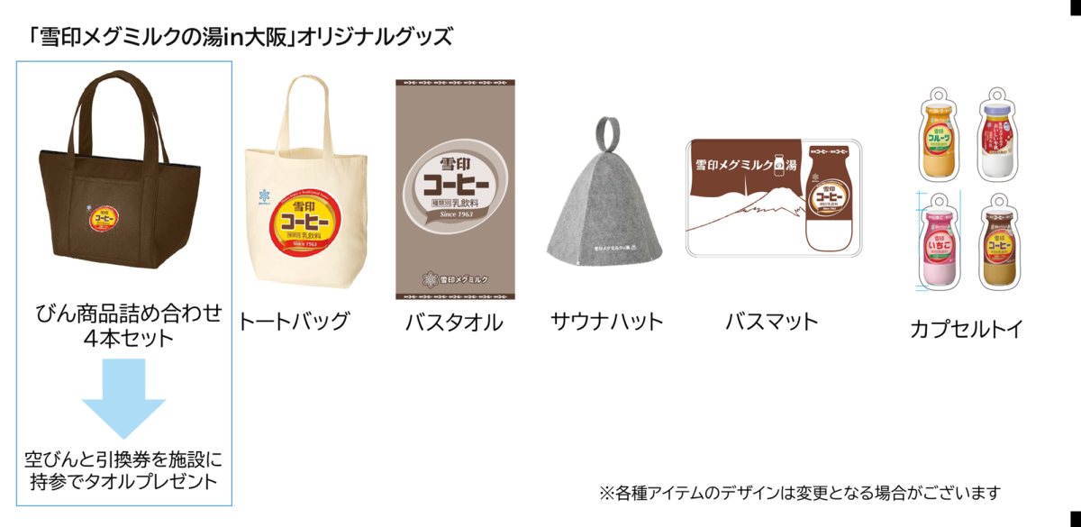 ポップアップストア「雪印メグミルクの湯in大阪」が10月25日・26日の2日間、阪急大阪梅田駅1階ビッグマン前広場に登場する。販売予定のオリジナルグッズ