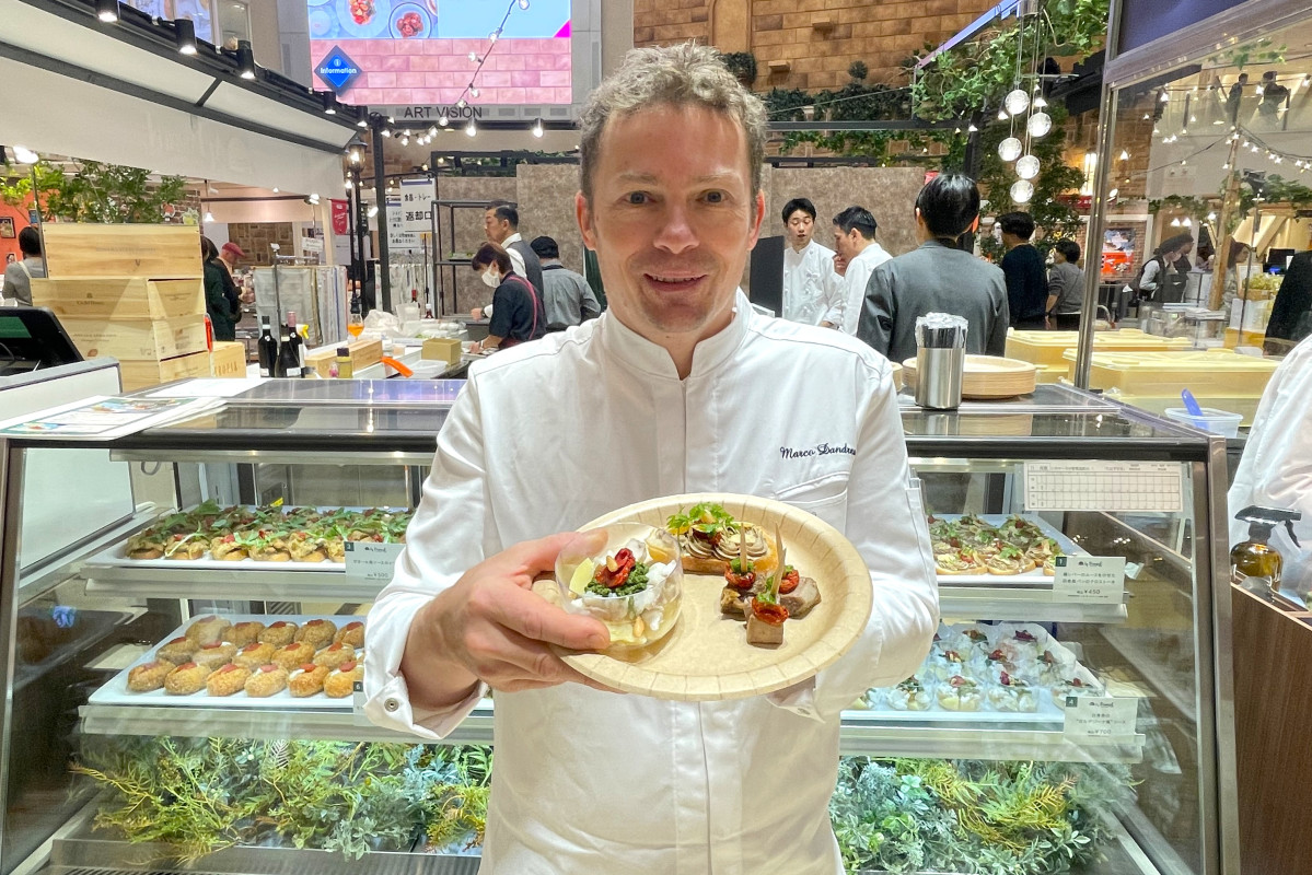 イタリアの食文化に焦点を当てる催事「イタリアフェア2025」が11月5日、阪急うめだ本店9階で始まった。ワインと小皿料理を提供する「バーカロ アル ボンピエーレ」