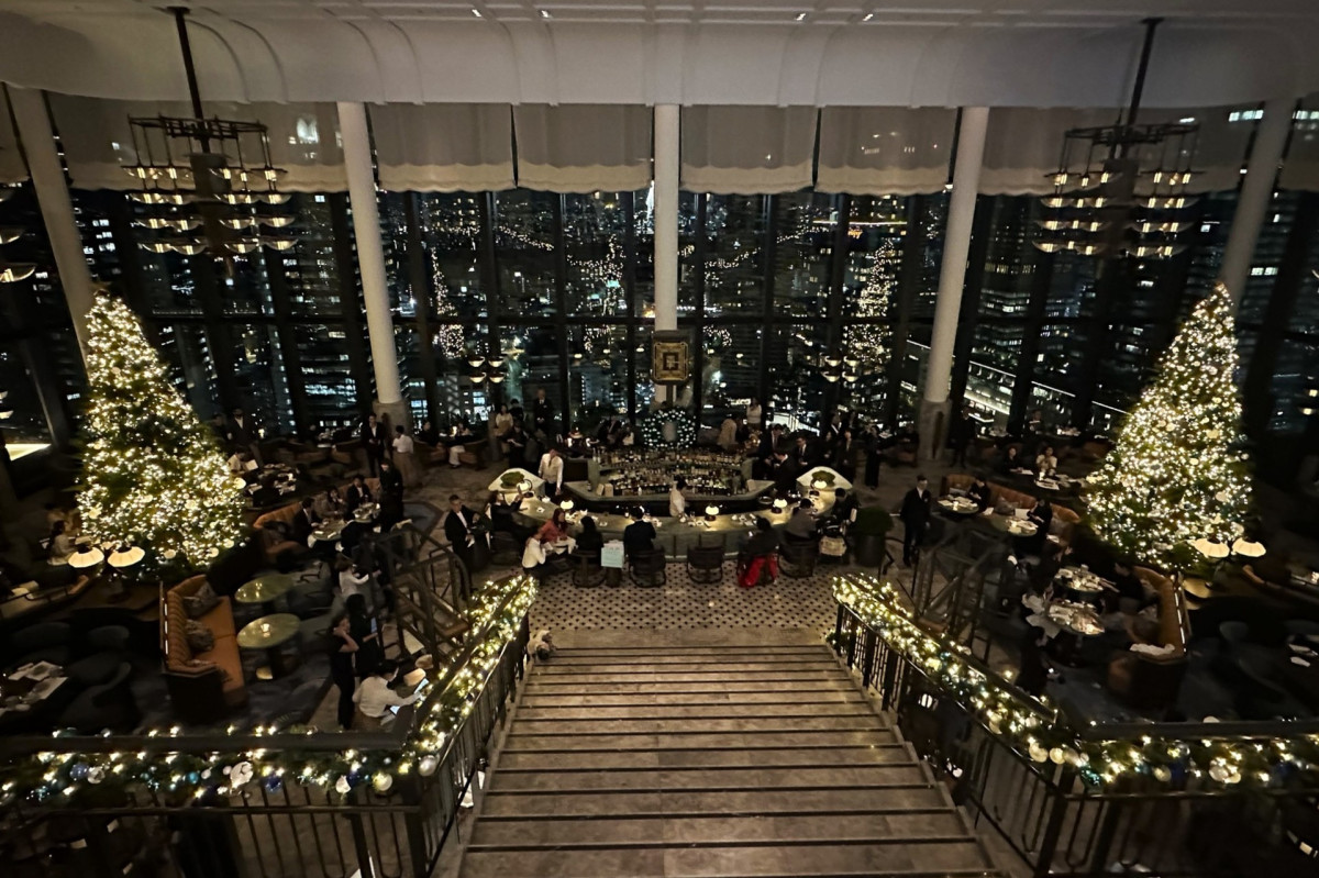 高級宝飾ブランド「ティファニー」とコラボレーションしたクリスマス装飾が11月21日、梅田のホテル「ウォルドーフ・アストリア大阪」(大阪市北区大深町)29階のラウンジ&バー「ピーコック・アレー」で始まった。