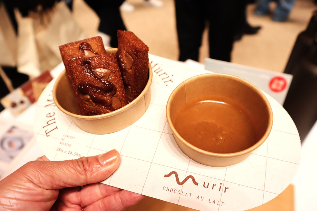 バレンタイン催事「阪急バレンタインチョコレート博覧会2026」が1月21日、阪急うめだ本店で始まる。焼きたてのフィナンシェを温かいキャラメルにディップする「ミュリル」