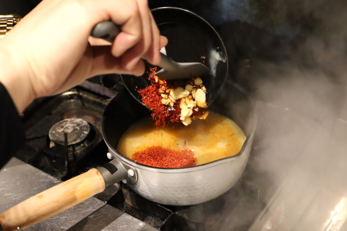辛麺専門店「赫辛麺 燦(あかからめん さん)」(大阪市北区堂山町)が、阪急東通り商店街にオープンして1カ月がたった。