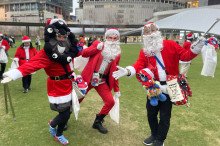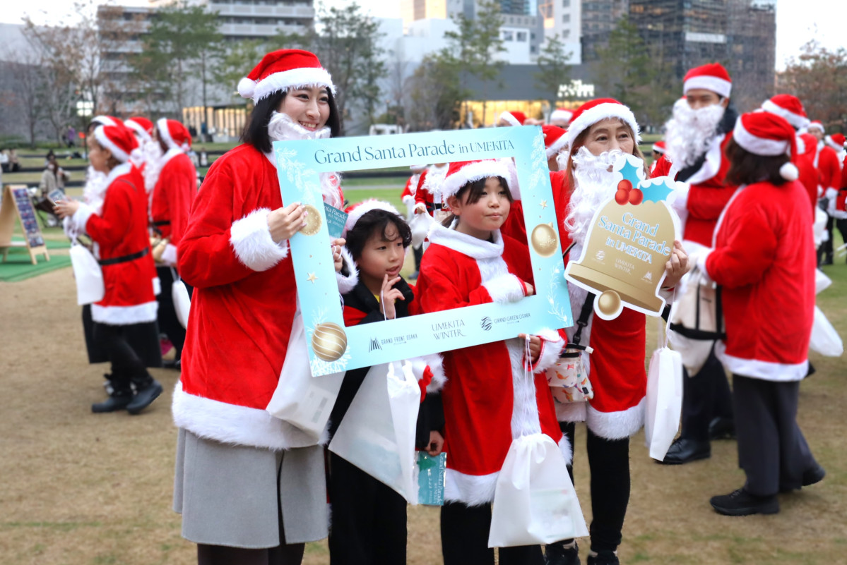 約650人がサンタクロースに扮(ふん)して来街者をもてなすクリスマスイベント「Grand Santa Parade in UMEKITA」が12月23日、うめきたエリアで開催された。