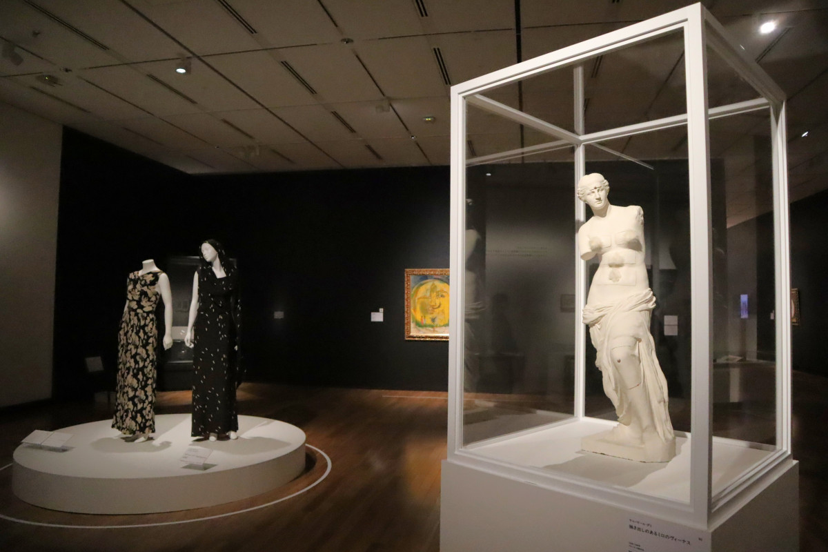 「拡大するシュルレアリスム 視覚芸術から広告、ファッション」が12月13日、大阪中之島美術館で始まった。引き出しやドレスなどファッションのコーナー