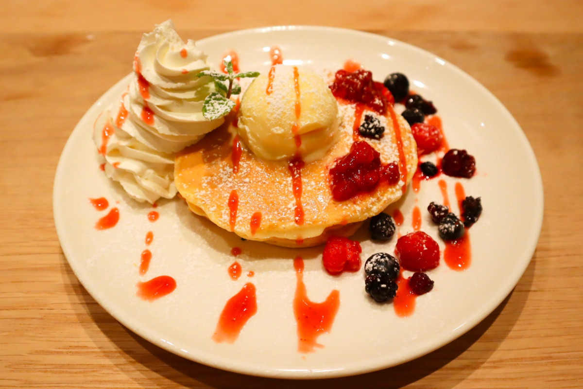 イタリアンレストラン「TO THE HERBS CAFE & PASTA」が、ディアモール大阪にオープンして1カ月がたった。3種類のベリーをのせたパンケーキ