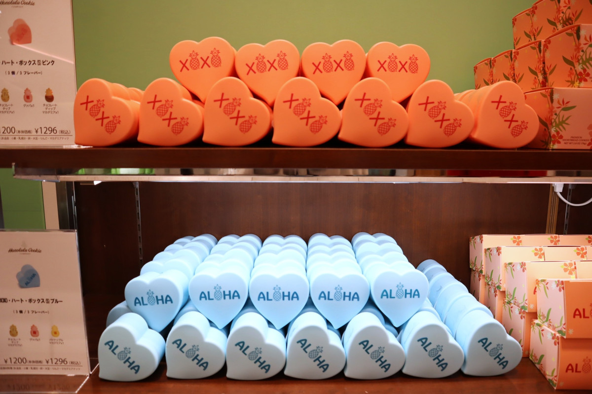米ハワイ発「ホノルル・クッキー・カンパニー」の期間限定店が1月28日、大丸梅田店1階イベントスペースにオープンした。ピンクとブルー2色展開の「XOXO・ハート・ボックス」