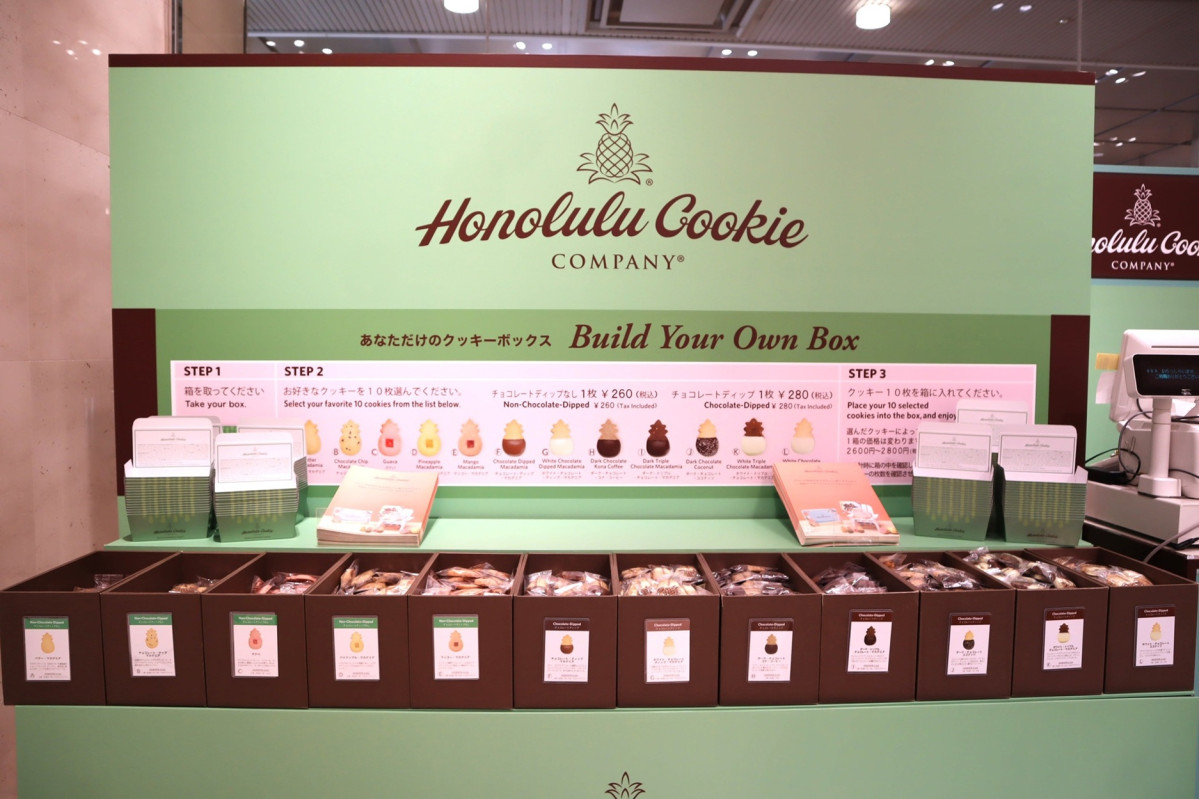 米ハワイ発「ホノルル・クッキー・カンパニー」の期間限定店が1月28日、大丸梅田店1階イベントスペースにオープンした。「あなただけのクッキーボックス Build Your Own Box」コーナー