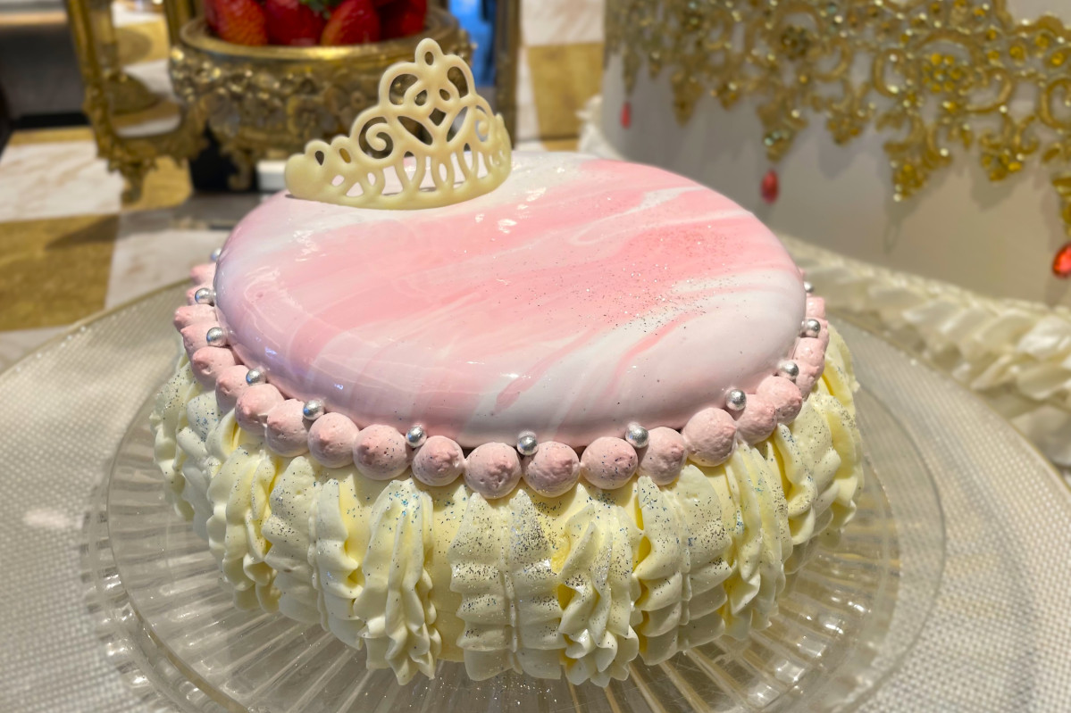 「ストロベリースイーツビュッフェ ~Marie Antoinette~」が現在、ヒルトン大阪2階「Folk Kitchen」で開催されている。真珠のネックレスやフリルをあしらった「パールをまとった女王のドレス」