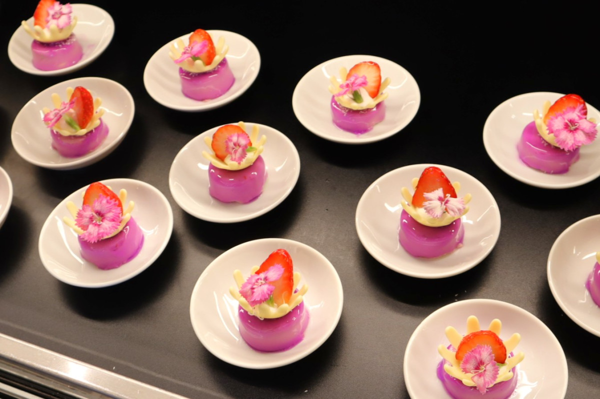 「ストロベリースイーツビュッフェ ~Marie Antoinette~」が現在、ヒルトン大阪2階「Folk Kitchen」で開催されている。バナナを使ったケーキ「紫色のジュエリー」