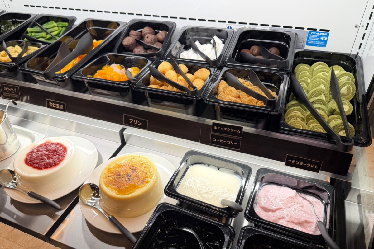 サラダバーに並ぶフルーツやスイーツ