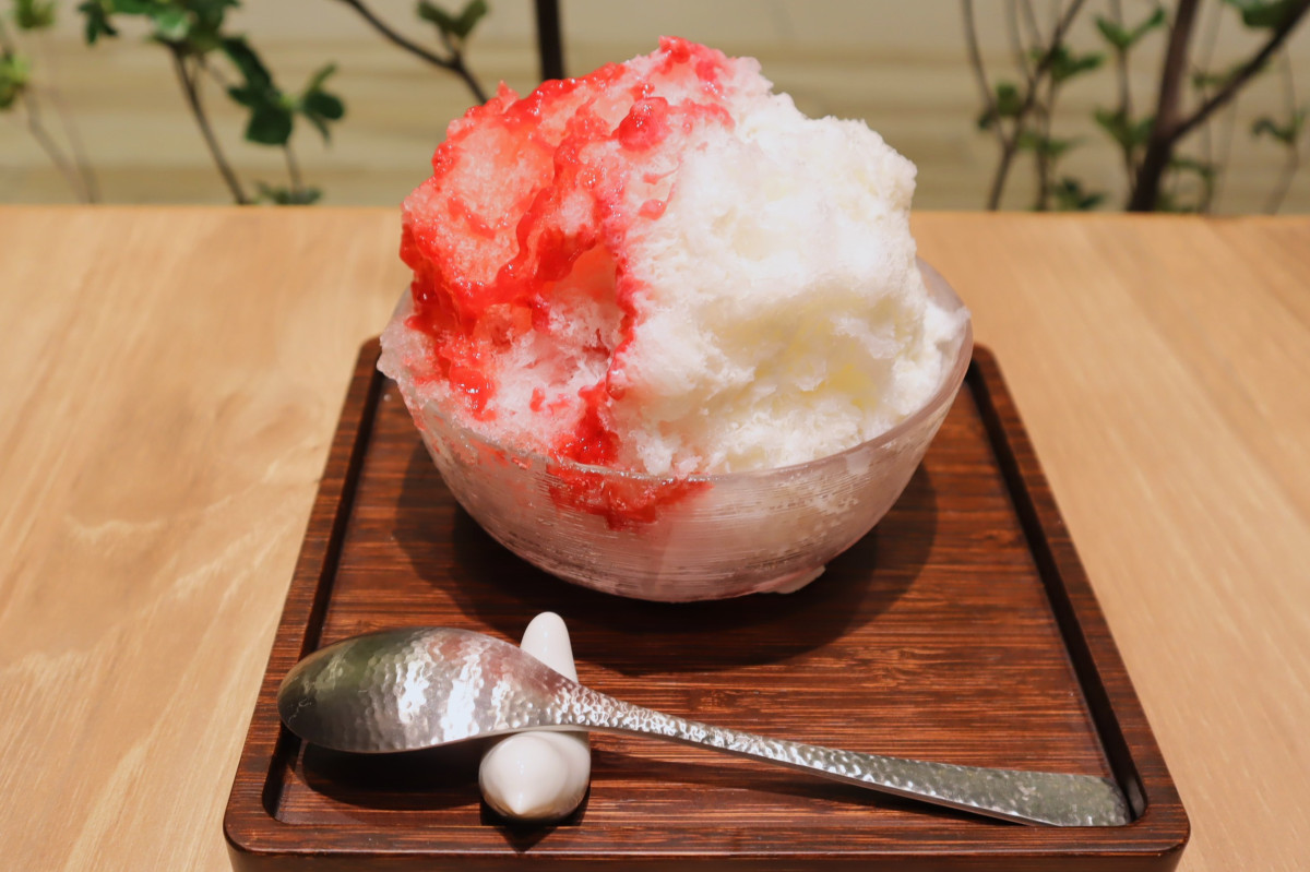 「和カフェ Tsumugi」が3月5日、KITTE大阪4階にオープンした。天然水の氷を使ったかき氷「濃い苺みるく」