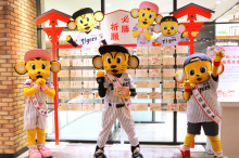 祈祷イベントに出席した球団マスコットキャラクター