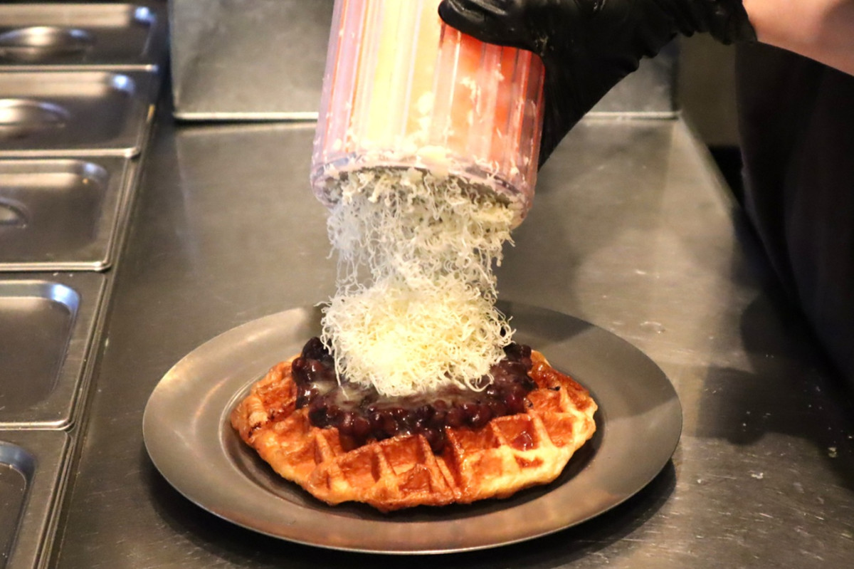 粒あんに細かく削ったバターをかける「あんバタームッフル」