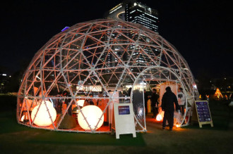ザ・リッツ・カールトン大阪のレセプションロビーにプリザーブドローズを飾ったクリスマスツリーが登場。豪華なツリーの前では、記念写真を撮る人も多い