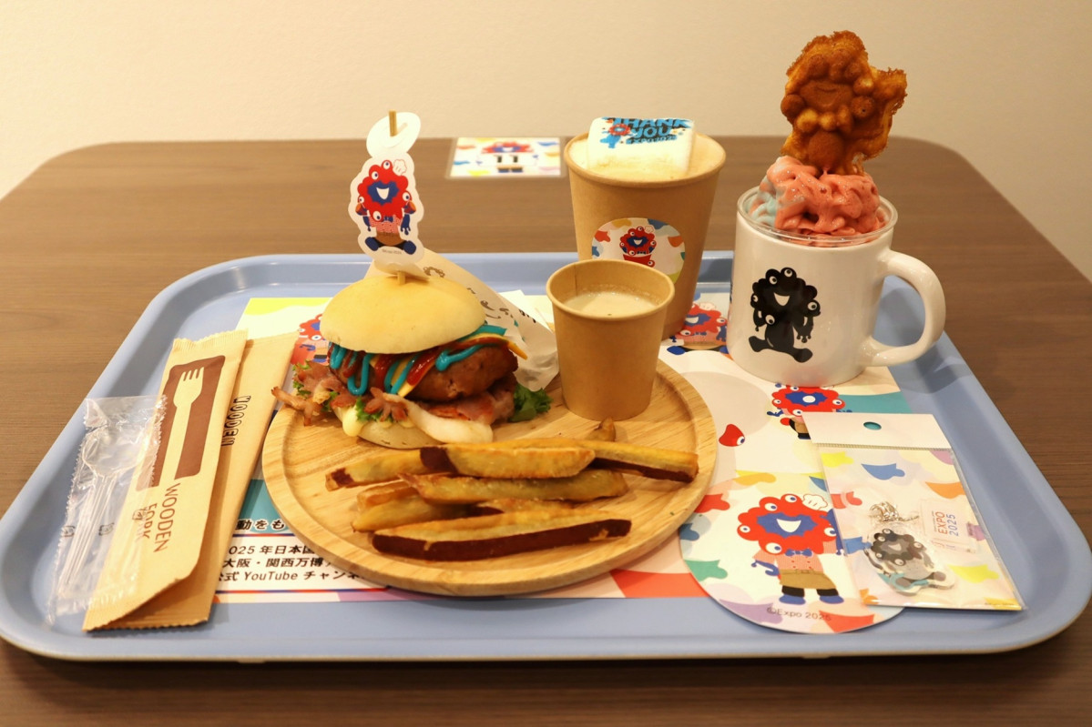 「EXPO2025オフィシャルカフェ らぽっぽリンクス梅田店」が4月27日、リンクス梅田1階に期間限定でオープンした。イートインメニュー「らぽっぽ特製 ミャクミャクおいもバーガープレート」