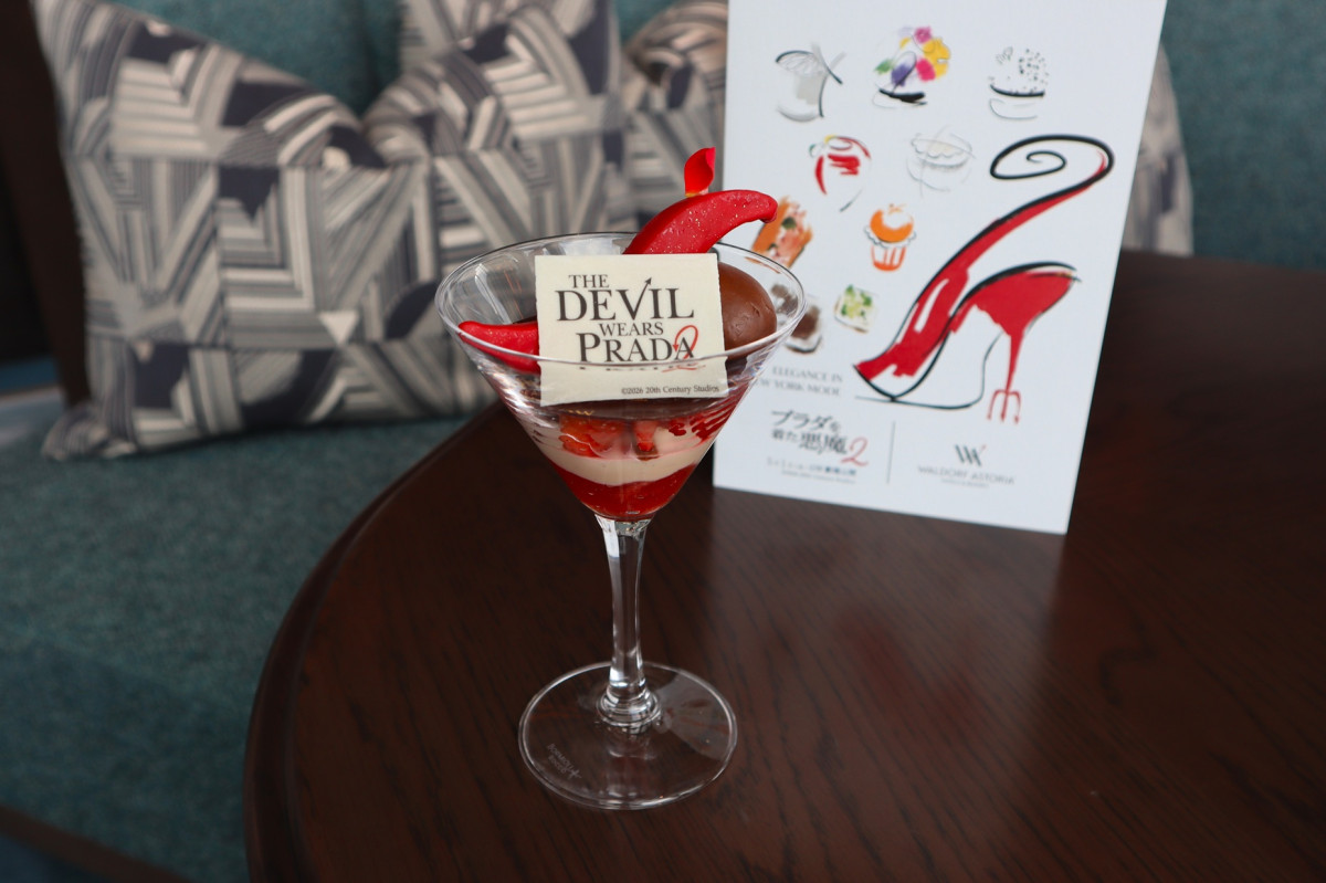 梅田のホテル「ウォルドーフ・アストリア大阪」(大阪市北区大深町)29階のラウンジ&バー「ピーコック・アレー」で4月28日、映画「プラダを着た悪魔2」コラボメニューの提供が始まった。