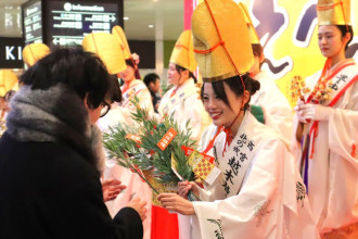 阪急沿線のえびす神社「えべっさん」を紹介する「十日戎(えびす)キャンペーン」が1月8日、阪急大阪梅田駅1階中央コンコース・ビックマン前広場で開催された。